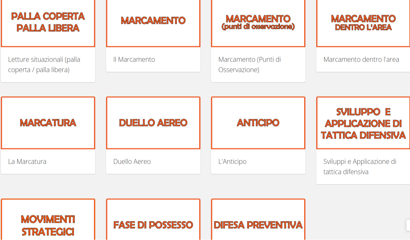 I percorsi comprendono sia moduli tecnici e tattici mirati al ruolo di competenza, sia argomenti extra calcistici fondamentali per favorire la crescita personale e sportiva del giovane atleta.